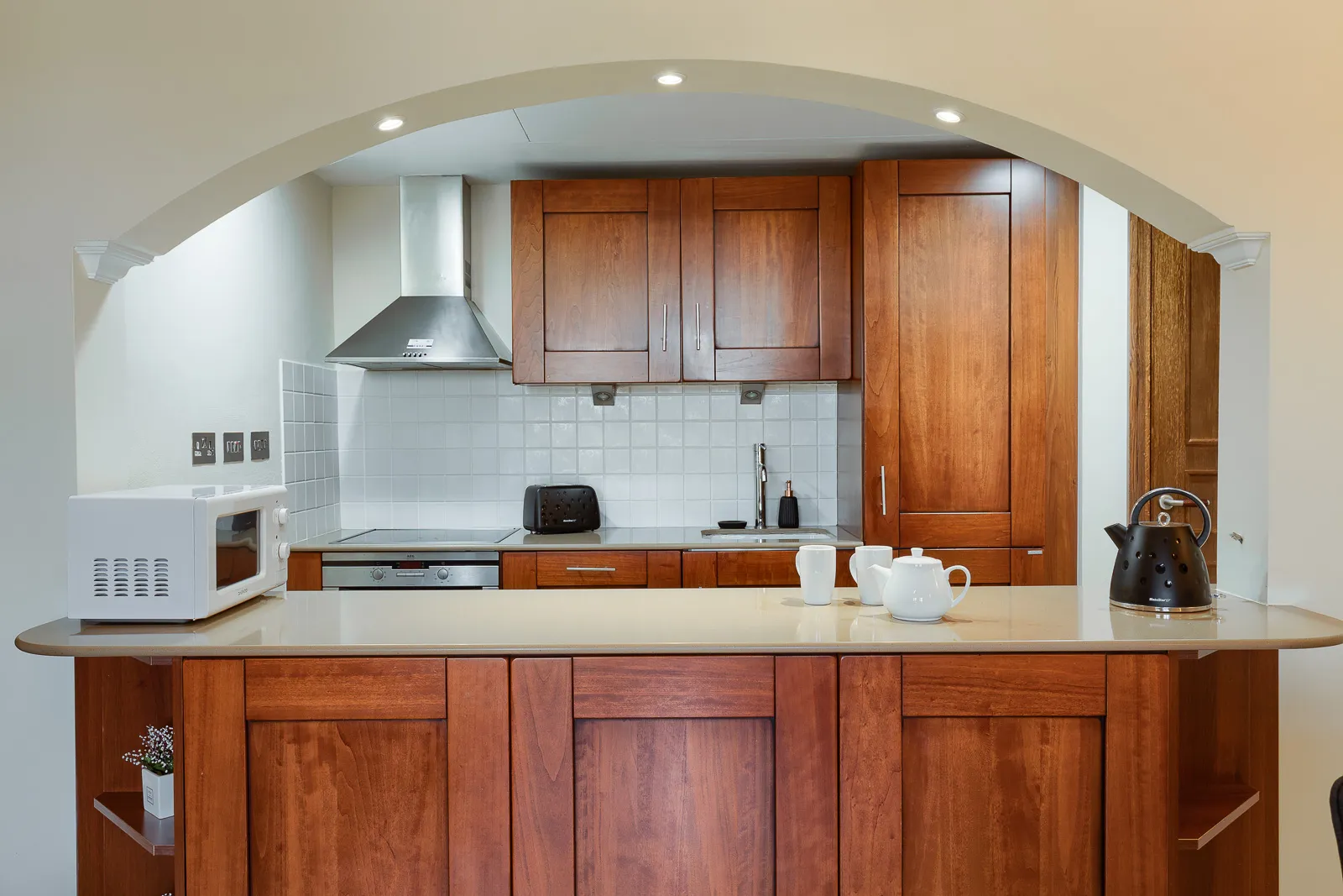 Separated by a granite-topped sideboard, the kitchen is well equipped with all modern conveniences including electric oven and hob and integrated dishwasher. The washing machine is housed in a handy utility cupboard off the hallway.
