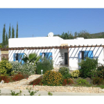 Villa Lefki faces countryside and sea views and is set amongst Mediterranean style gardens surrounding the spacious swimming pool, which has a step / sitting area open to the pool. Generous paved lounging area also surrounds the swimming pool, provided also are sun beds, an outdoor dining suite, charcoal BBQs and outdoor shower.
