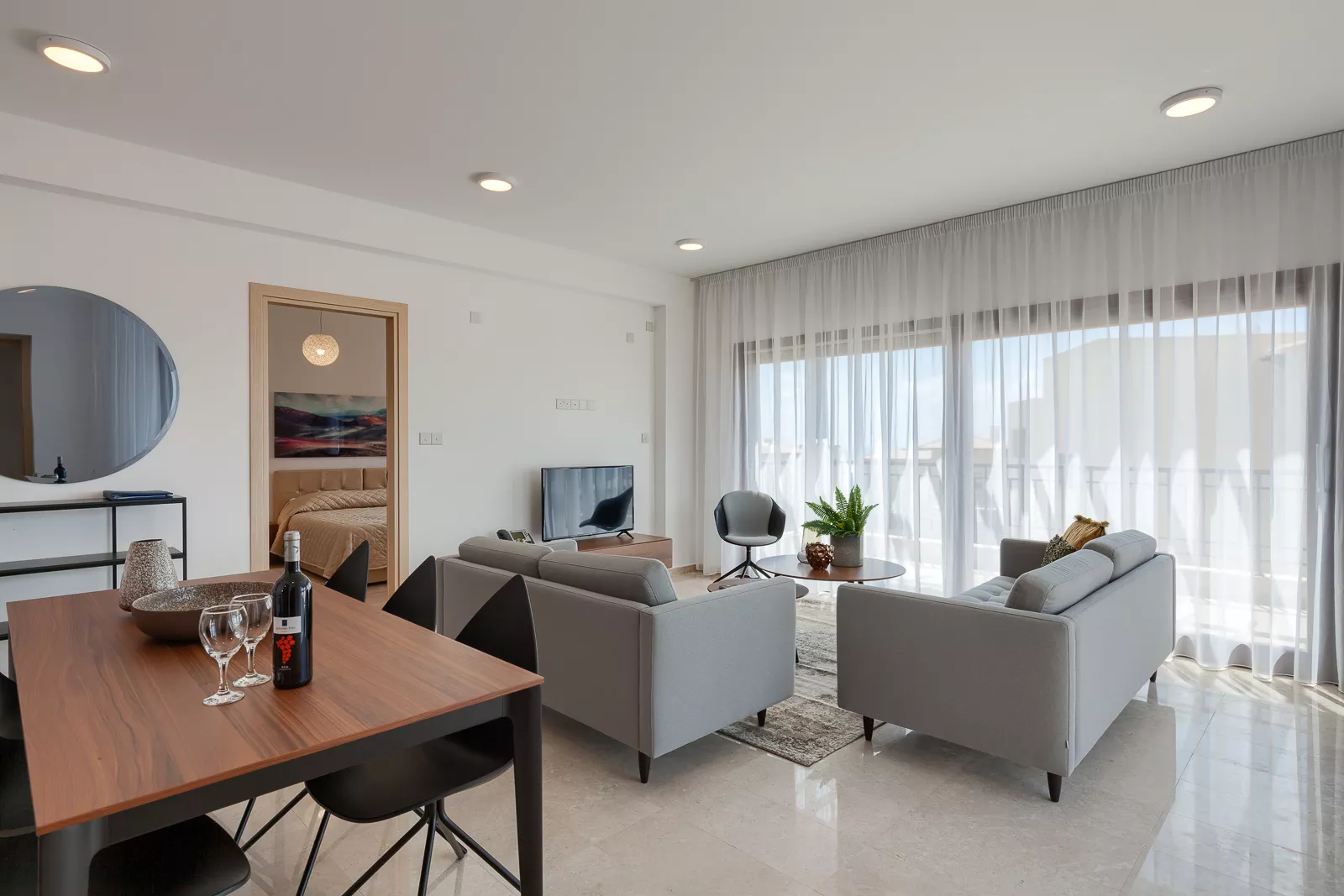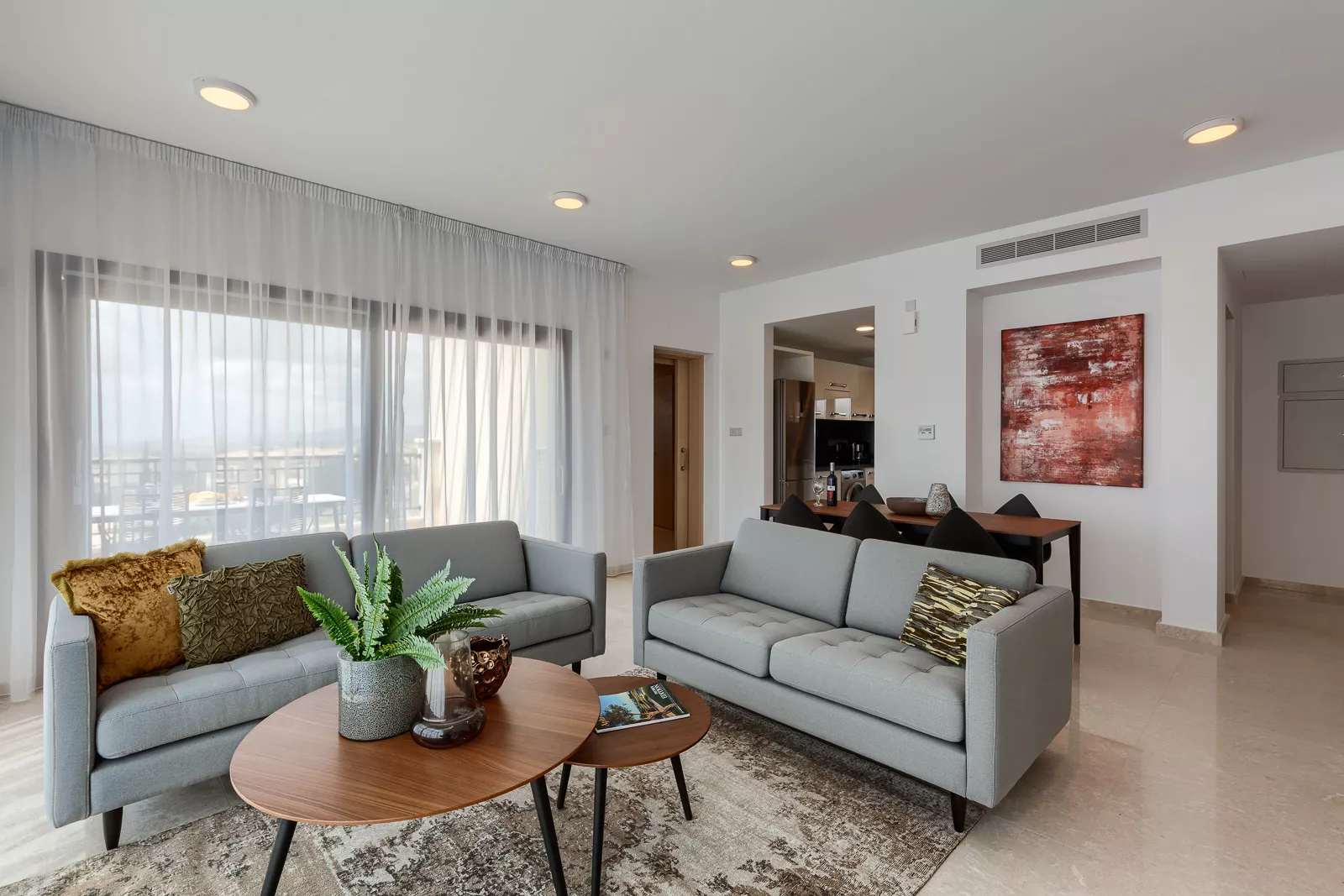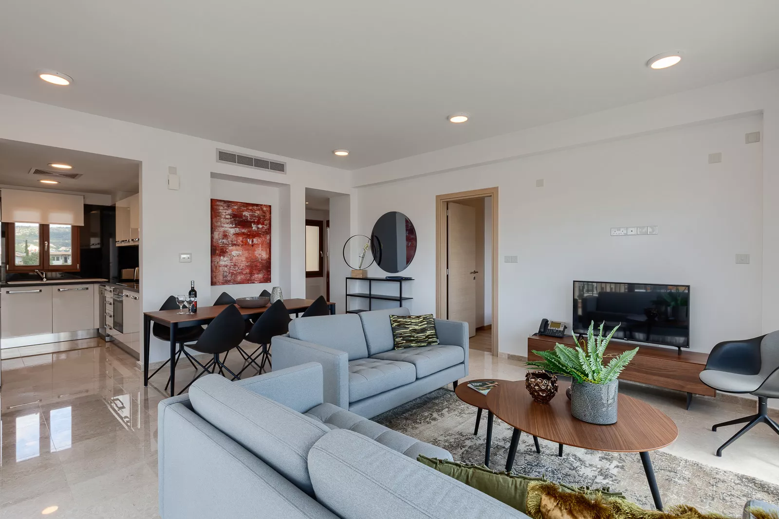 A beautiful 2-bedroom Premium Serviced Apartment located on the Alexander Heights complex of the Aphrodite Hills Resort. Being the latest addition to the new Alexander Heights project, this apartment offers top luxury and is centrally located just a few steps away from the Resorts Village Square and all the facilities and amenities.
