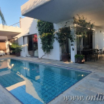 It has a private pool as well as covered terraces which can be used at different times of the day. A terrace overlooking the sea can also be created from the upper floor.